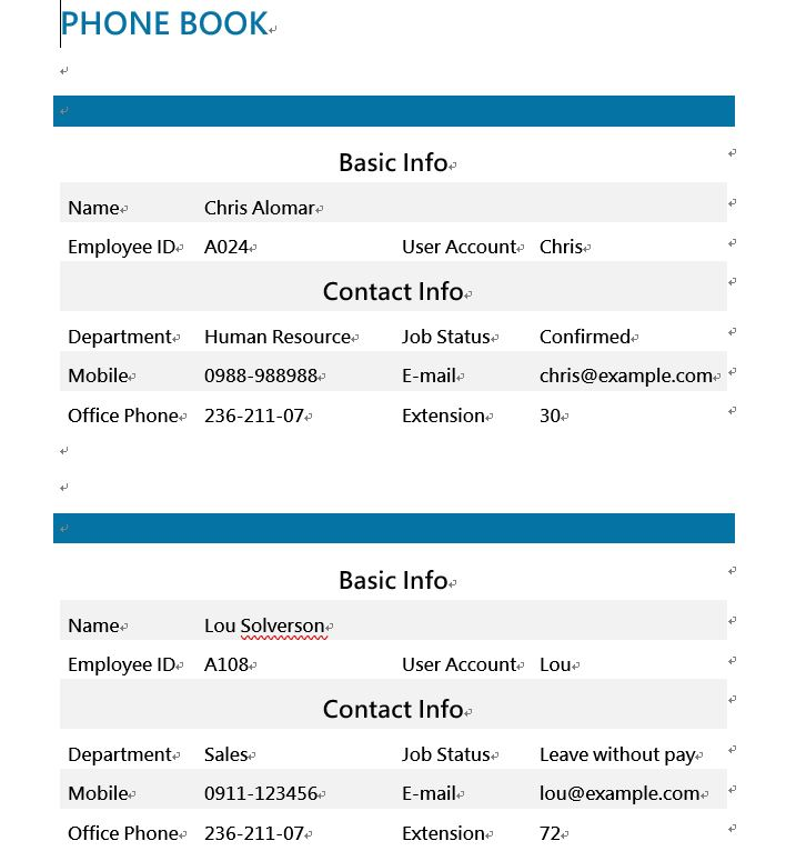 How to do a Mail Merge - With more than one record per page The first thing you need to do a mail merge is some data in Excel, I made up the following: Next launch Word and write a letter. Next click the Mailingstab, Start Mail Merge drop down and select Step by Step Mail Merge Wizard How to set up a merge document to include multiple records ... Answer: In the simple mail merge, insert all of the desired Raiser's Edge 7 merge fields, using the 'Insert Raiser's Edge field' button located at the top of the Word document. For Office 2007 and Office 2010, this is found under the Add-Ins Tab. After the last RE7 merge field, select Insert Word field and select the 'Next Record' field How to use the Mail Merge feature in Word to create and to ... Note You can also use the Mail Merge toolbar to insert merge fields, work with your mail-merge main document, or run a mail merge. To display the Mail Merge toolbar, point to Letters and Mailings on the Tools menu, and then click Show Mail Merge Toolbar.
